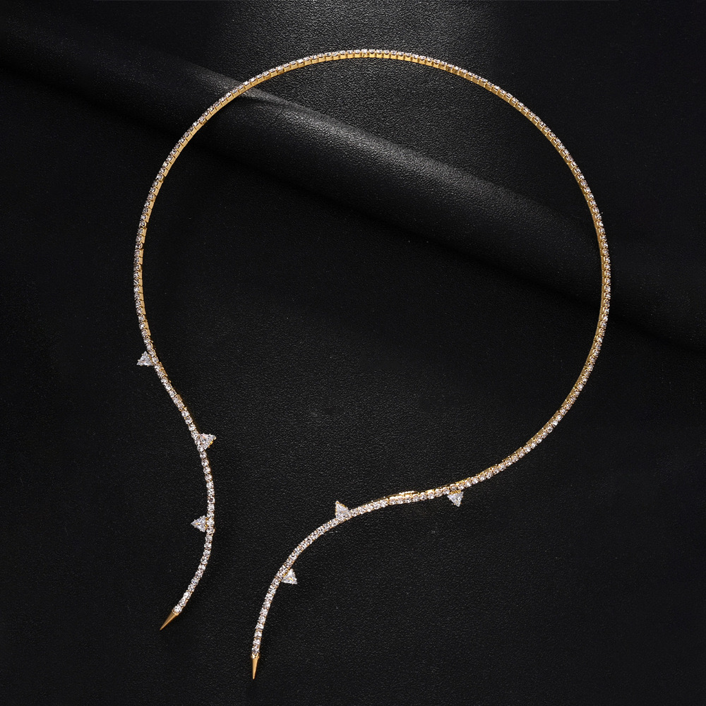 CompareA sleek, vintage-inspired rhinestone choker featuring a graceful curved silhouette that frames the neckline with understated sparkle. Perfect for elegant evenings and modern statement looks.