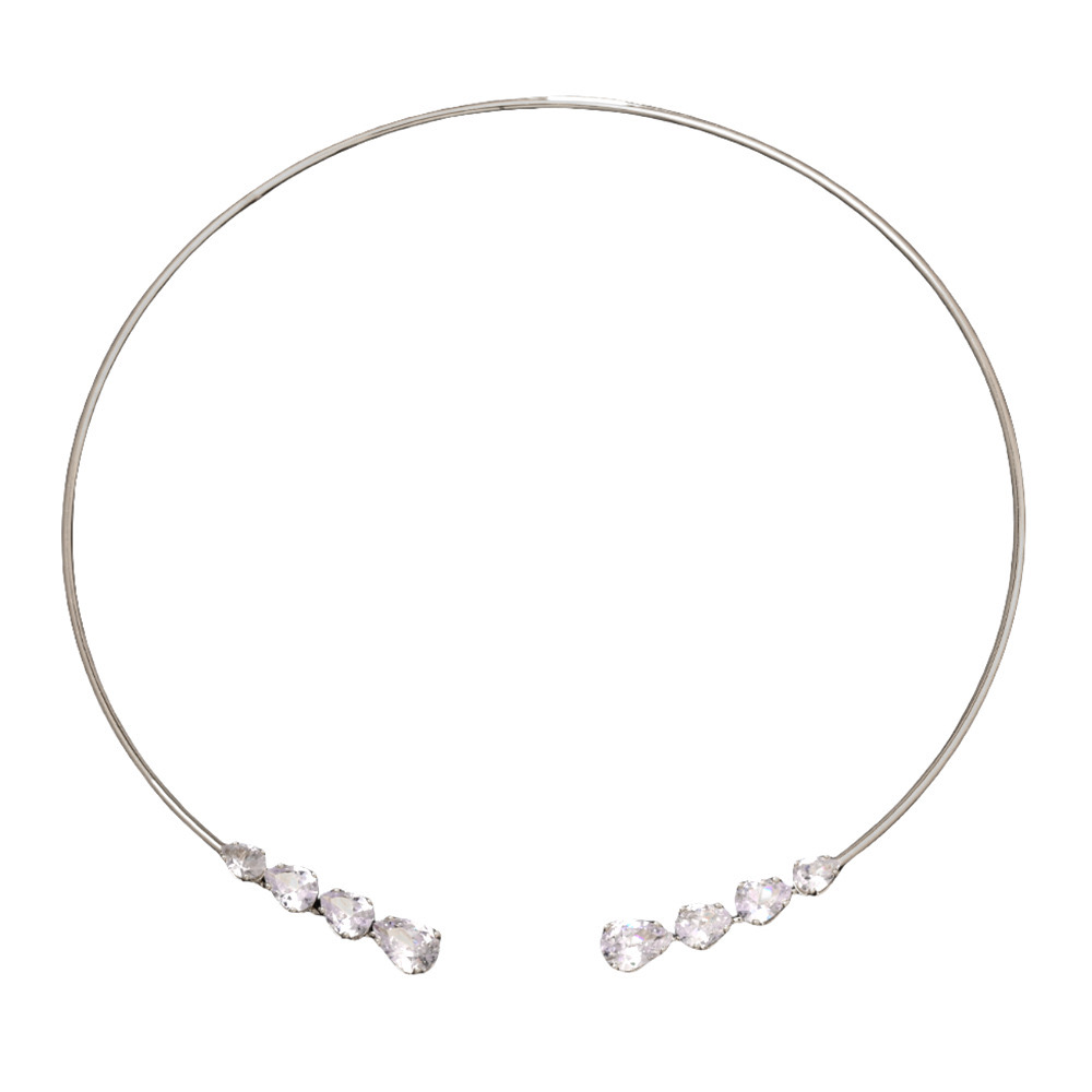 A sleek retro-inspired gold arc choker finished with sparkling crystal accents at both ends. Minimal yet striking, this open-style choker adds effortless elegance to both everyday and evening looks.