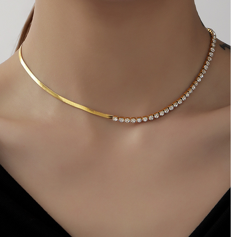 A chic dual-design choker featuring a sleek gold snake chain paired with a crystal-inlaid strand. Crafted for modern elegance, this piece blends vintage charm with everyday luxury—perfect for effortless styling from day to night