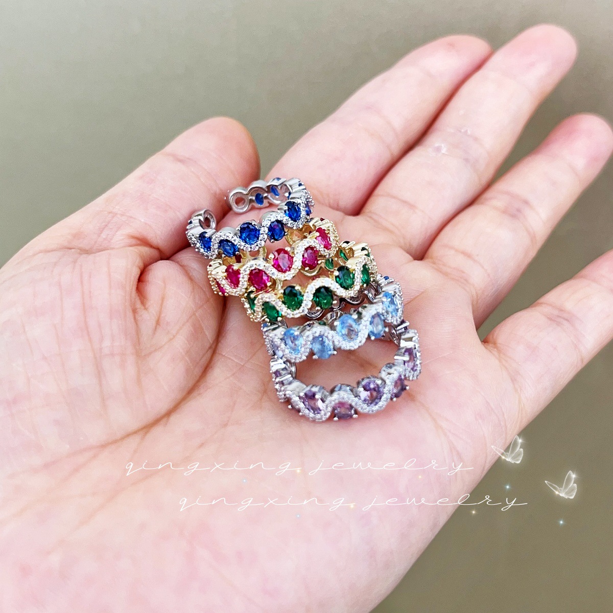 Inlaid with high-quality multicolor zircon stones