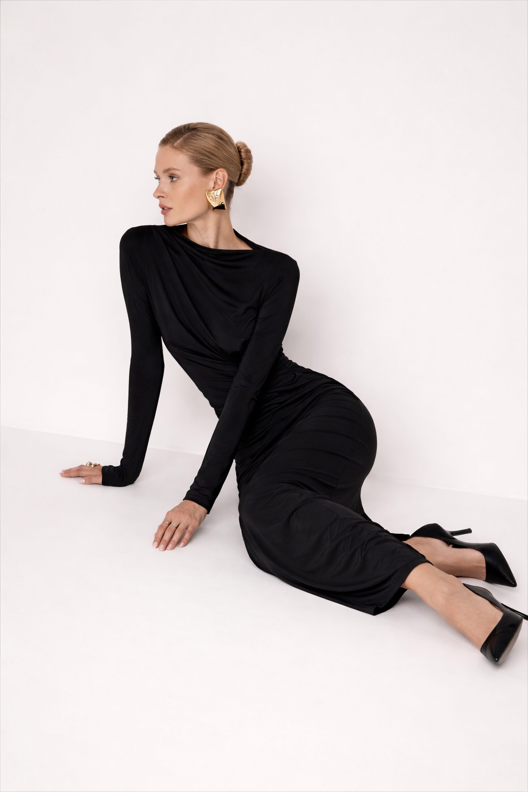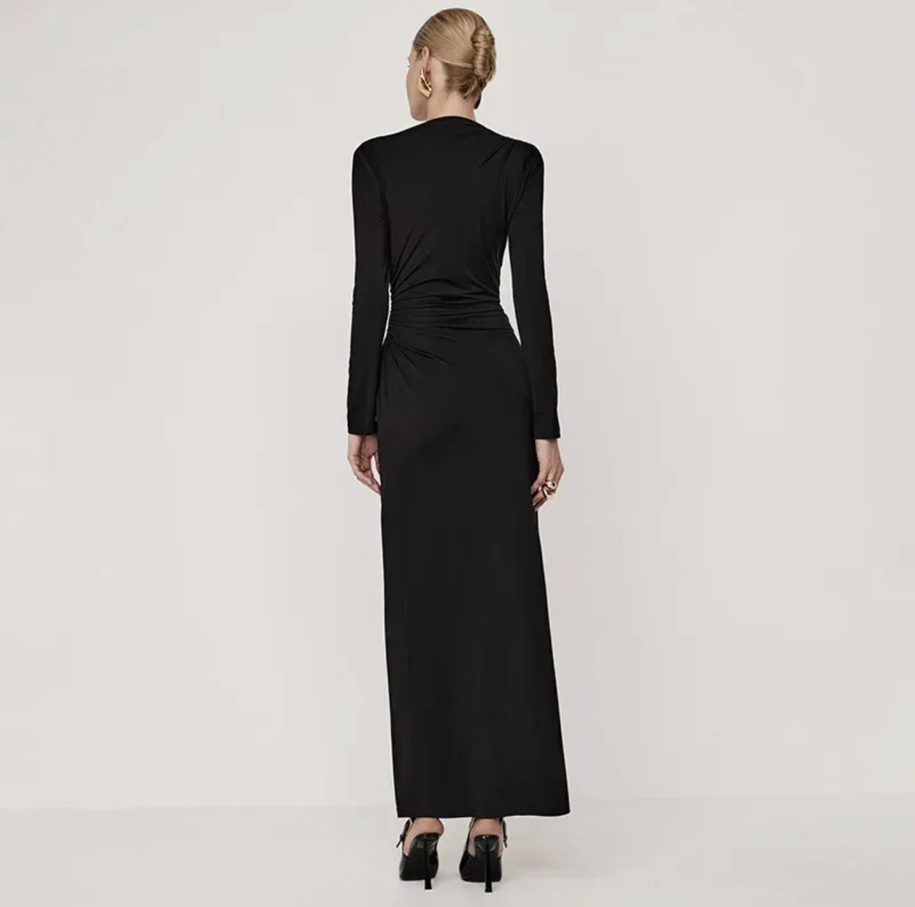 Be the first to review “Noir Sculpted Drape Maxi Dress”