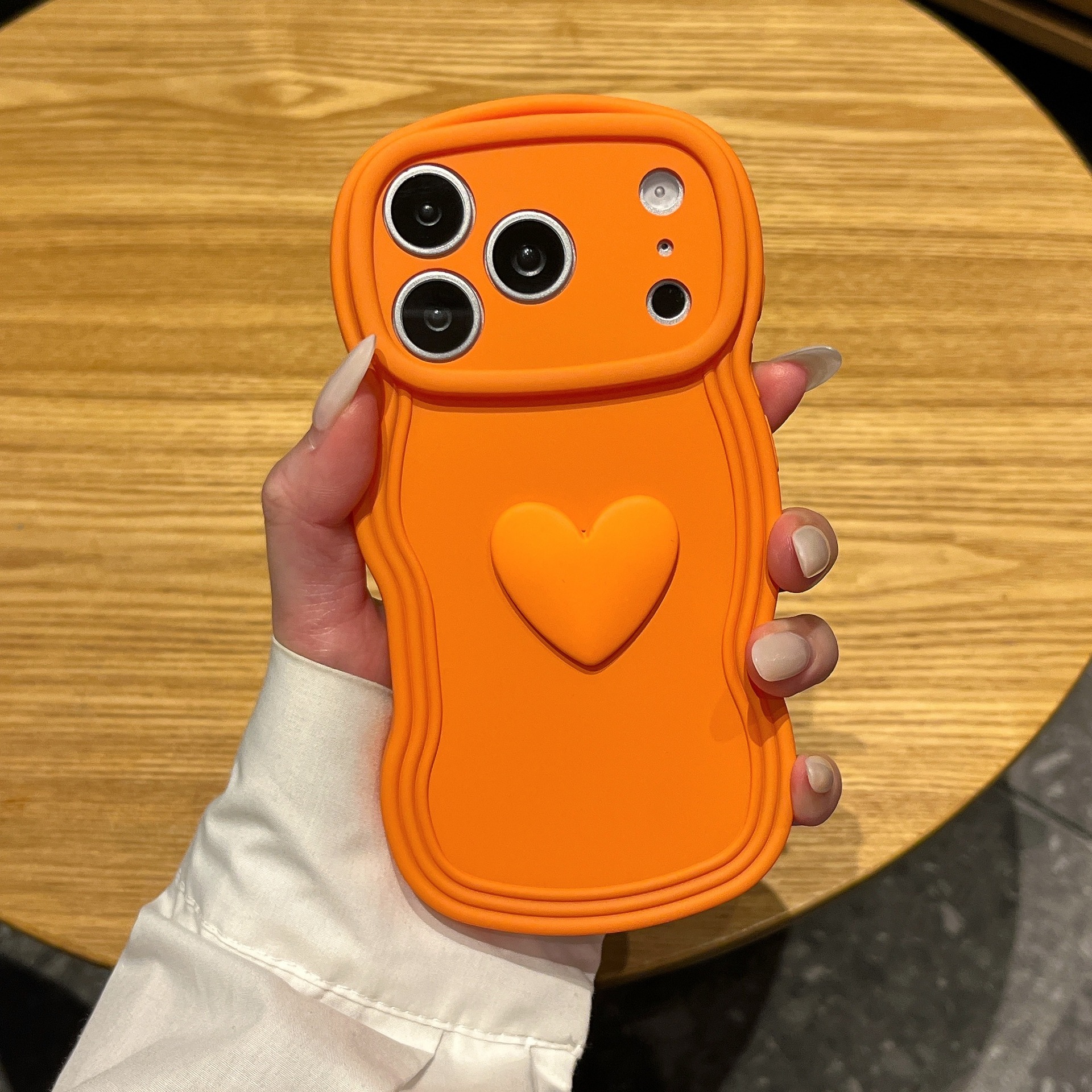 Make a statement with the Orange Love 3D Heart Silicone iPhone Case. Designed in a vibrant solid color with a raised heart detail, this case blends playful charm with modern minimalism. Crafted from soft, high-quality silicone, it offers a comfortable grip while protecting your phone from everyday bumps and scratches. The sculpted edges and camera frame add a trendy, premium look that stands out effortlessly.
