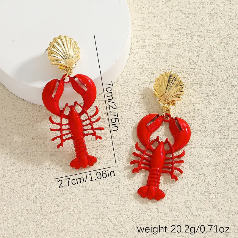 Make a bold fashion statement with these playful Red Lobster Drop Earrings. Designed with a gold-tone shell stud and vibrant lobster-shaped pendant, these earrings bring a fun marine-inspired look to your outfit. Crafted from lightweight resin and plastic with stainless steel ear posts, they’re perfect for parties, street style, and casual outings.