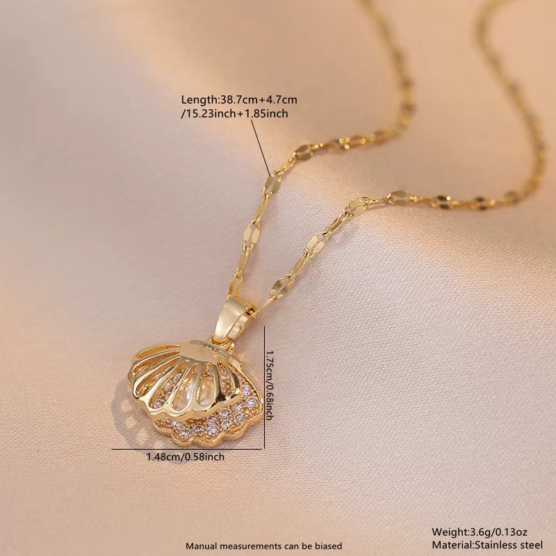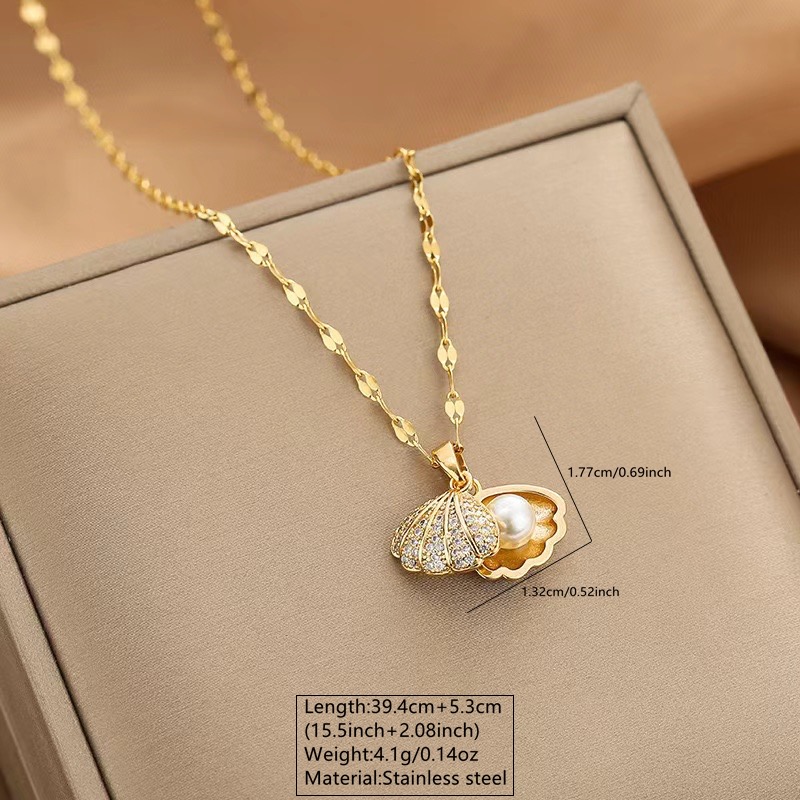 A delicate gold-tone shell-shaped pendant that opens to reveal a pearl nestled inside, inspired by the beauty of ocean treasures. Crafted for a soft, elegant glow, this piece adds a subtle luxury touch to everyday and occasion wear.