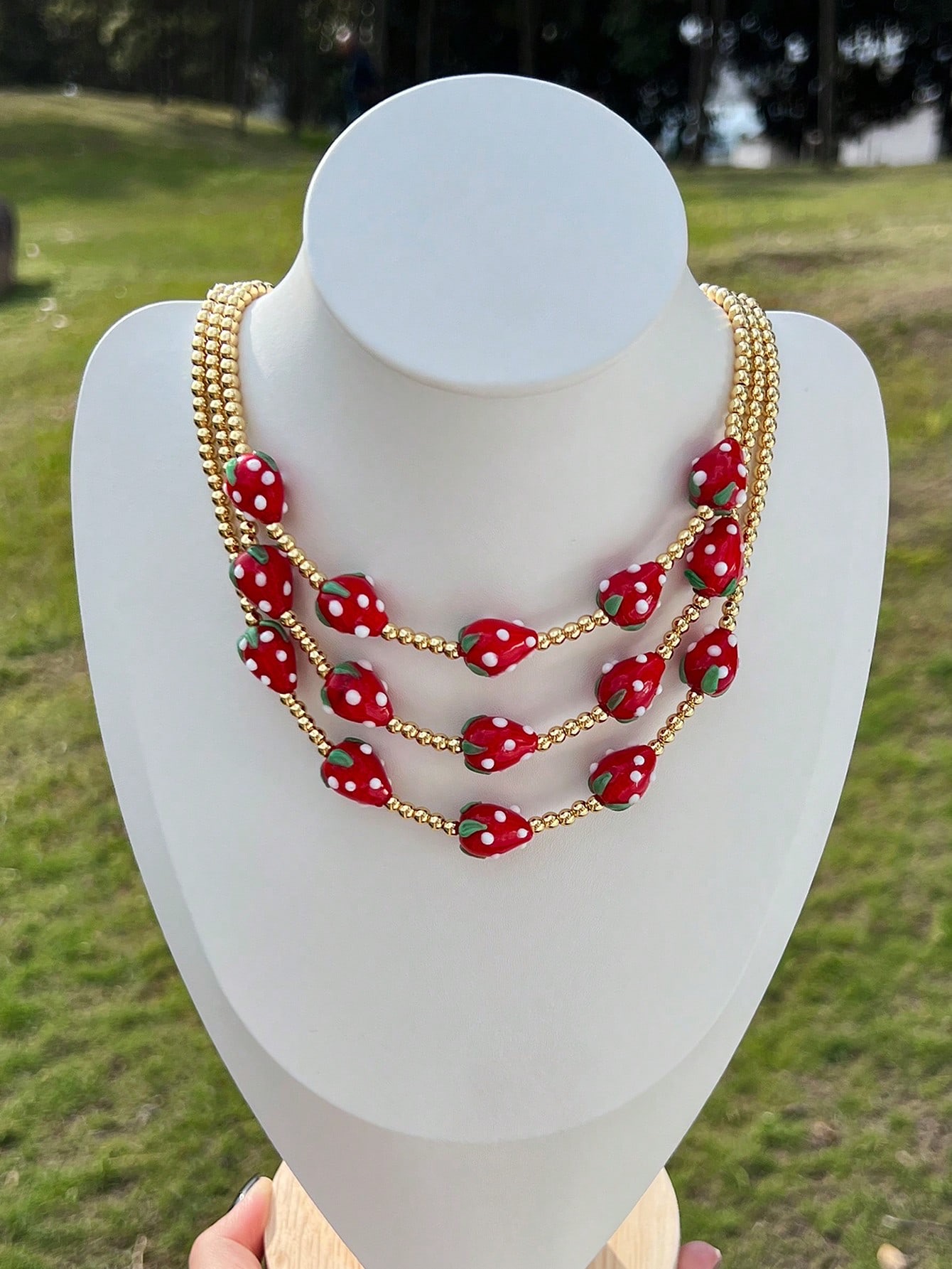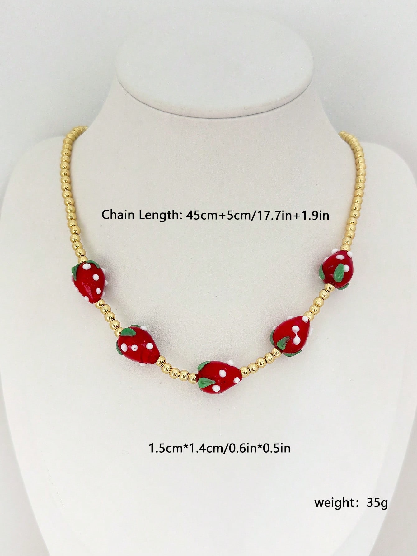 A playful and eye-catching beaded necklace featuring adorable strawberry charms paired with an 18K gold-plated chain. Cute, vibrant, and perfect for adding a fun pop to your everyday or party looks.